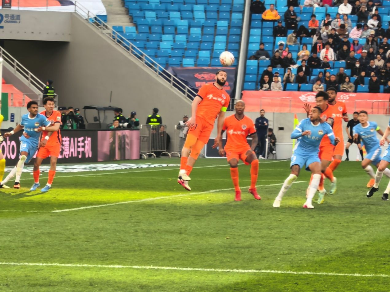 比賽開場后,河南隊率先制造險情。第3分鐘,邁達納利用前場任意球完成頭球攻門,被海牛隊門將牟鵬飛在門線上穩(wěn)穩(wěn)化解。前20分鐘,河南隊反客為主,多次利用定位球機會威脅主隊大門。好在,牟鵬飛狀態(tài)出色,連續(xù)兩次精彩撲救力保城門不失。