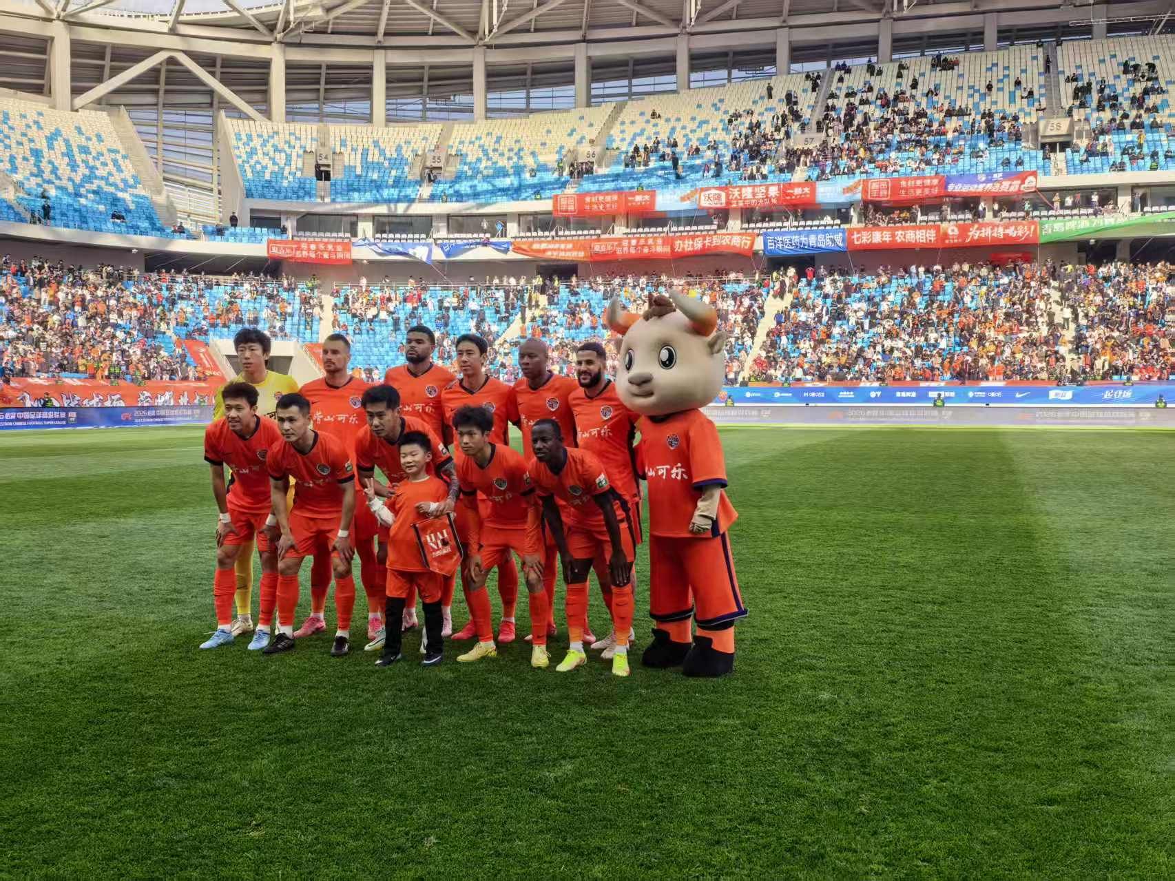 賽后,海牛球員繞場一周與到場的球迷互動慶祝。主力中后衛(wèi)安杰爾科維奇更是與海牛隊吉祥物犇犇、球迷一起高歌、共舞。這場首勝的熱情,在掌聲、歌聲、歡呼聲中,點燃青春體育場的激情。